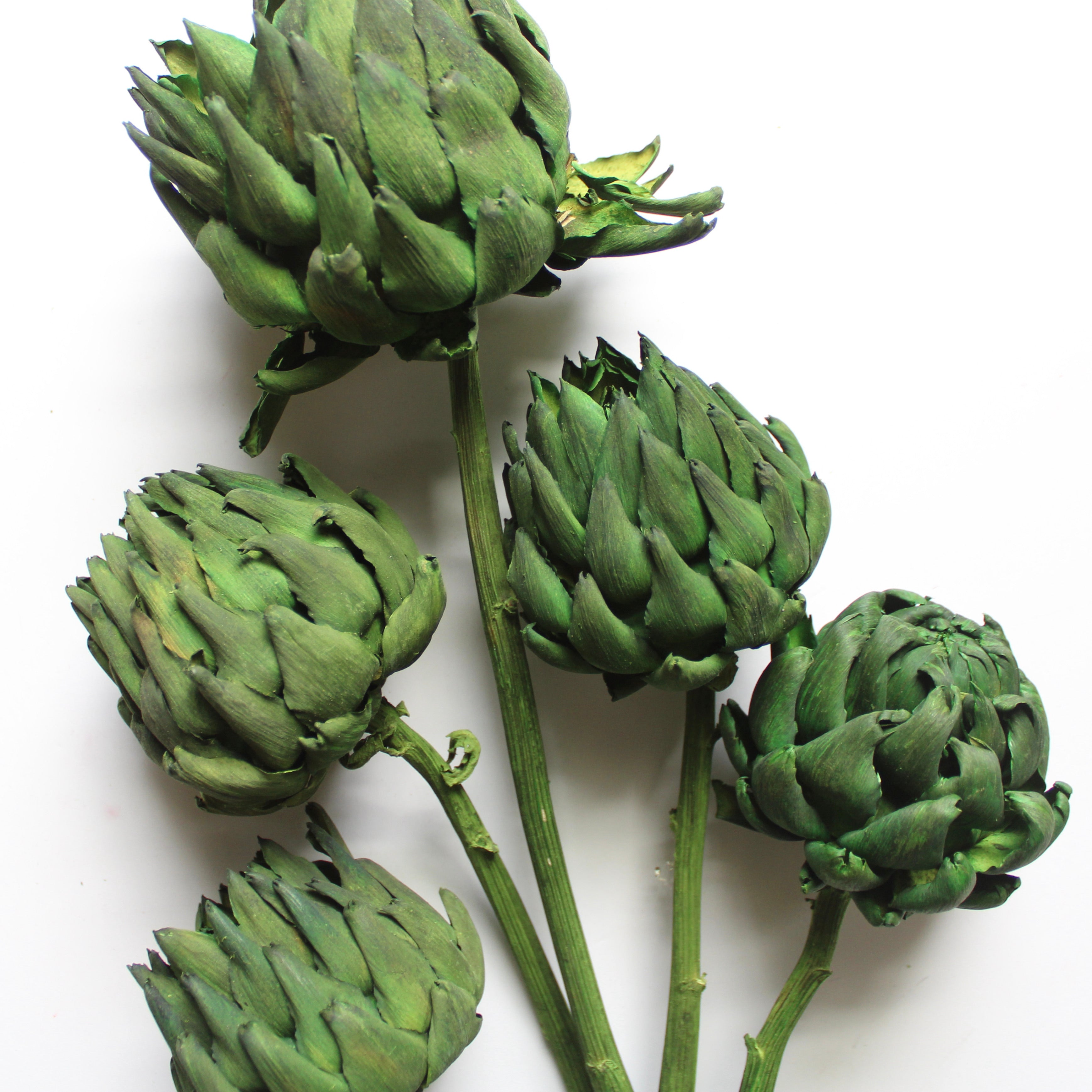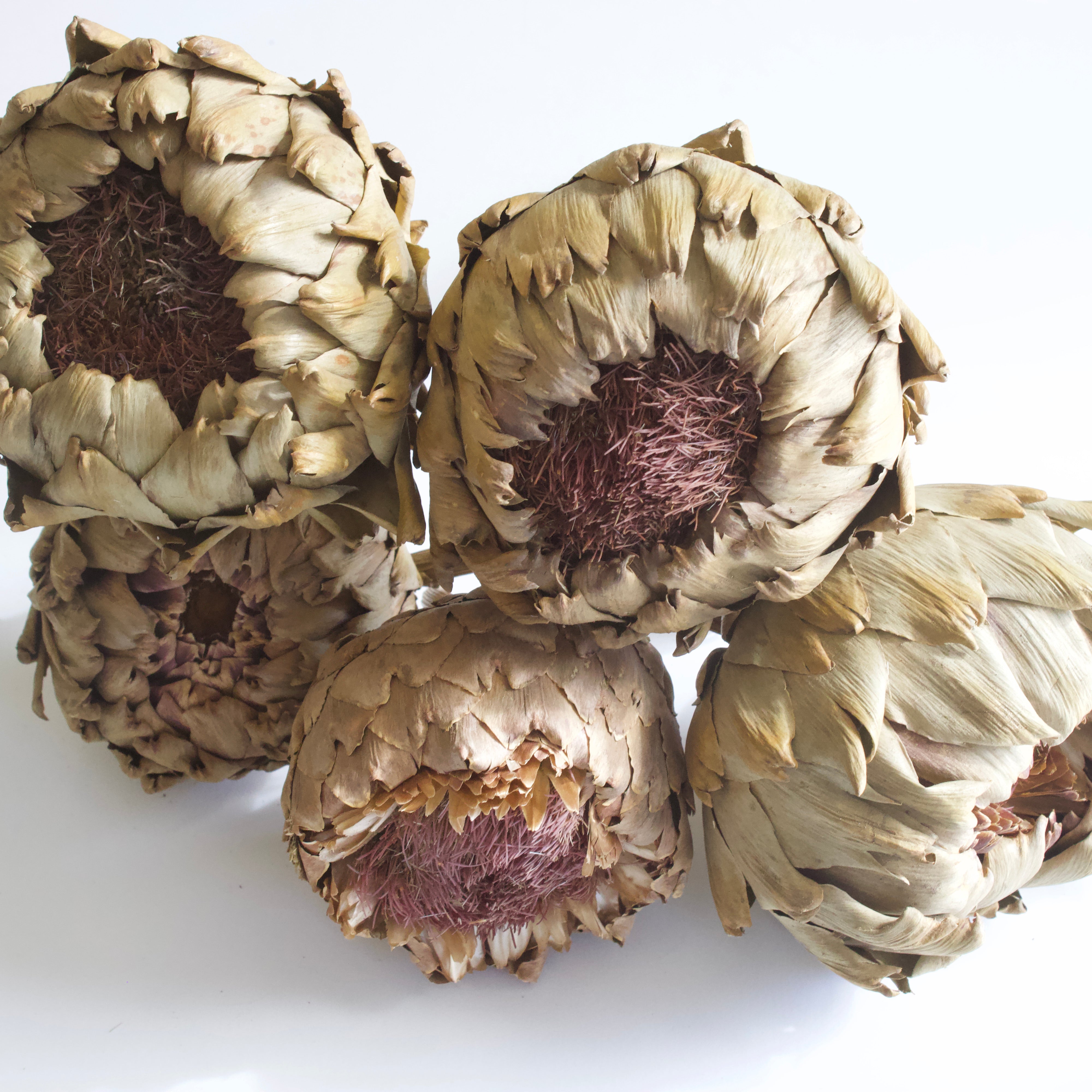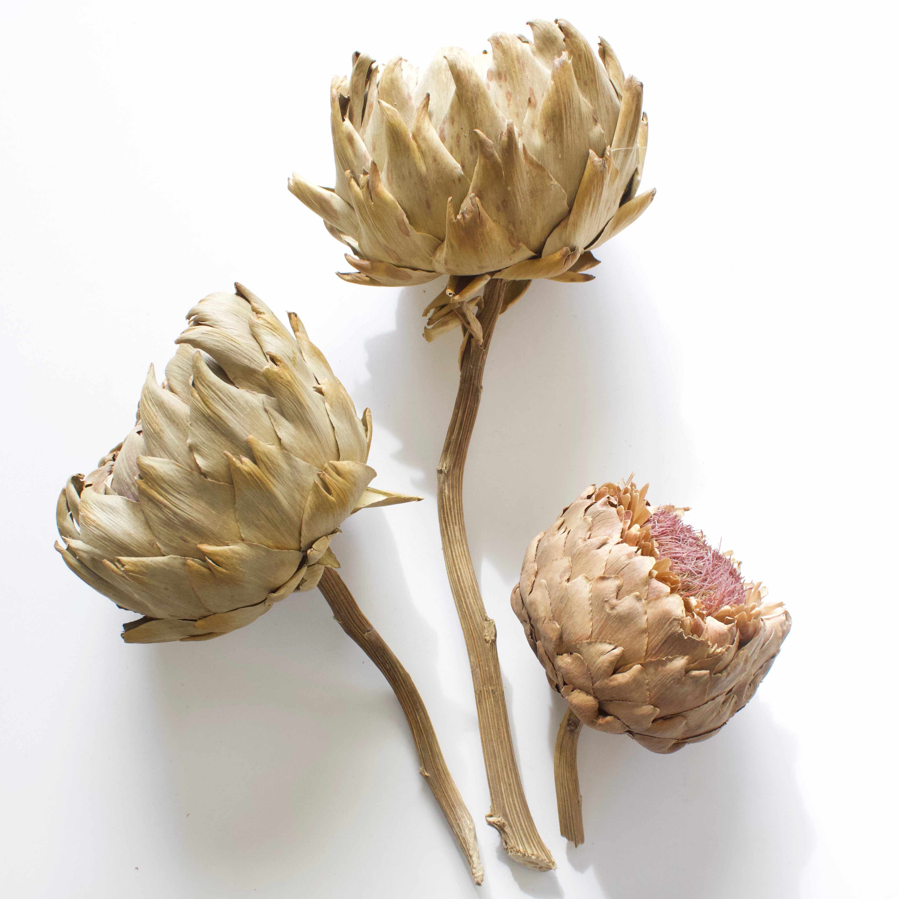 From an edible vegetable to a blooming flower, natural artichokes have been dried to last. Each spiky bloom sits atop its natural stem, ready to be placed in a vase or used in an arrangement as a standout element.