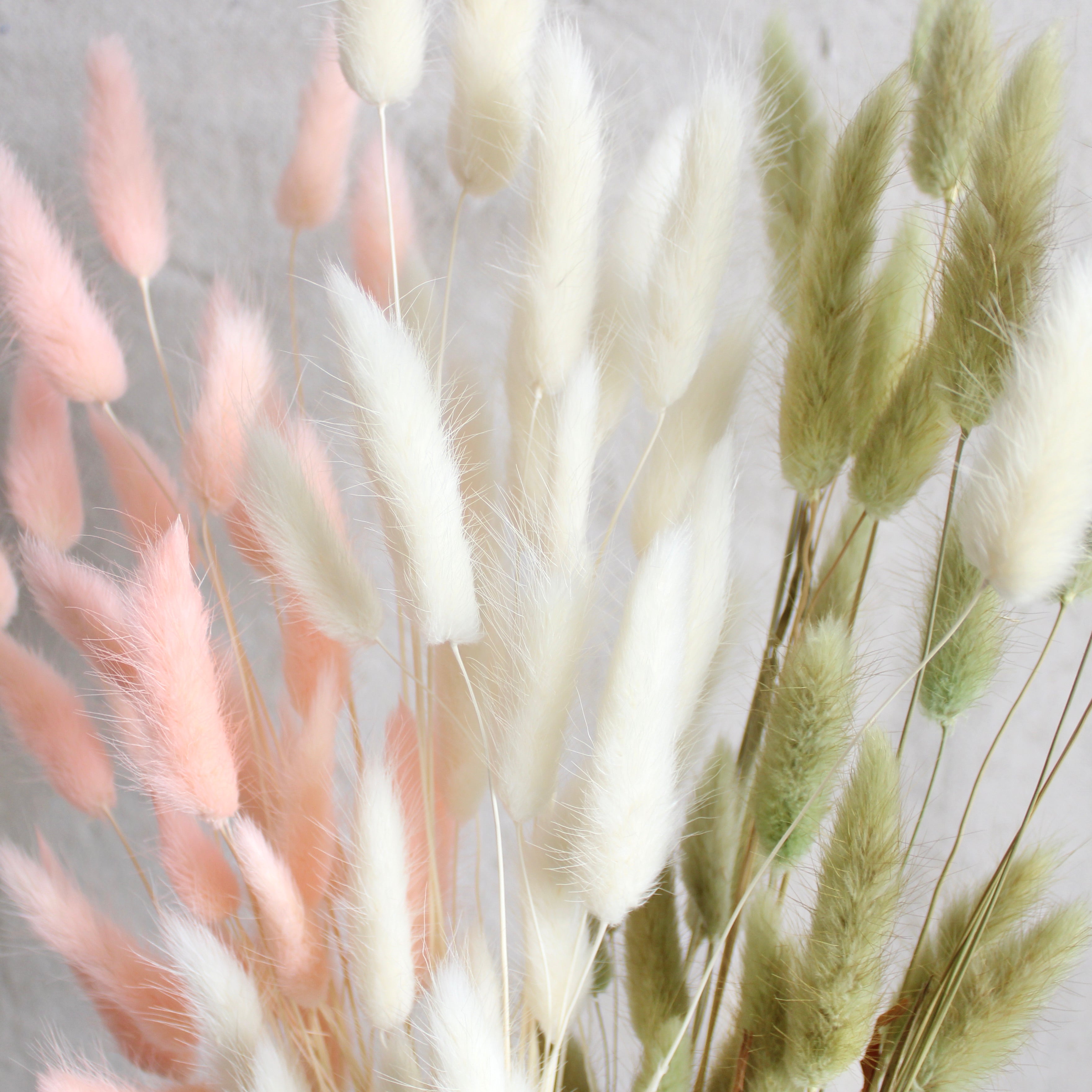 Add softness and fluff to your vases and custom creations. This super sweet bunch of bunny tails is the perfect way to soften anything. The ornamental grass has been dried to last, capable of withstanding handle for creating arrangements.