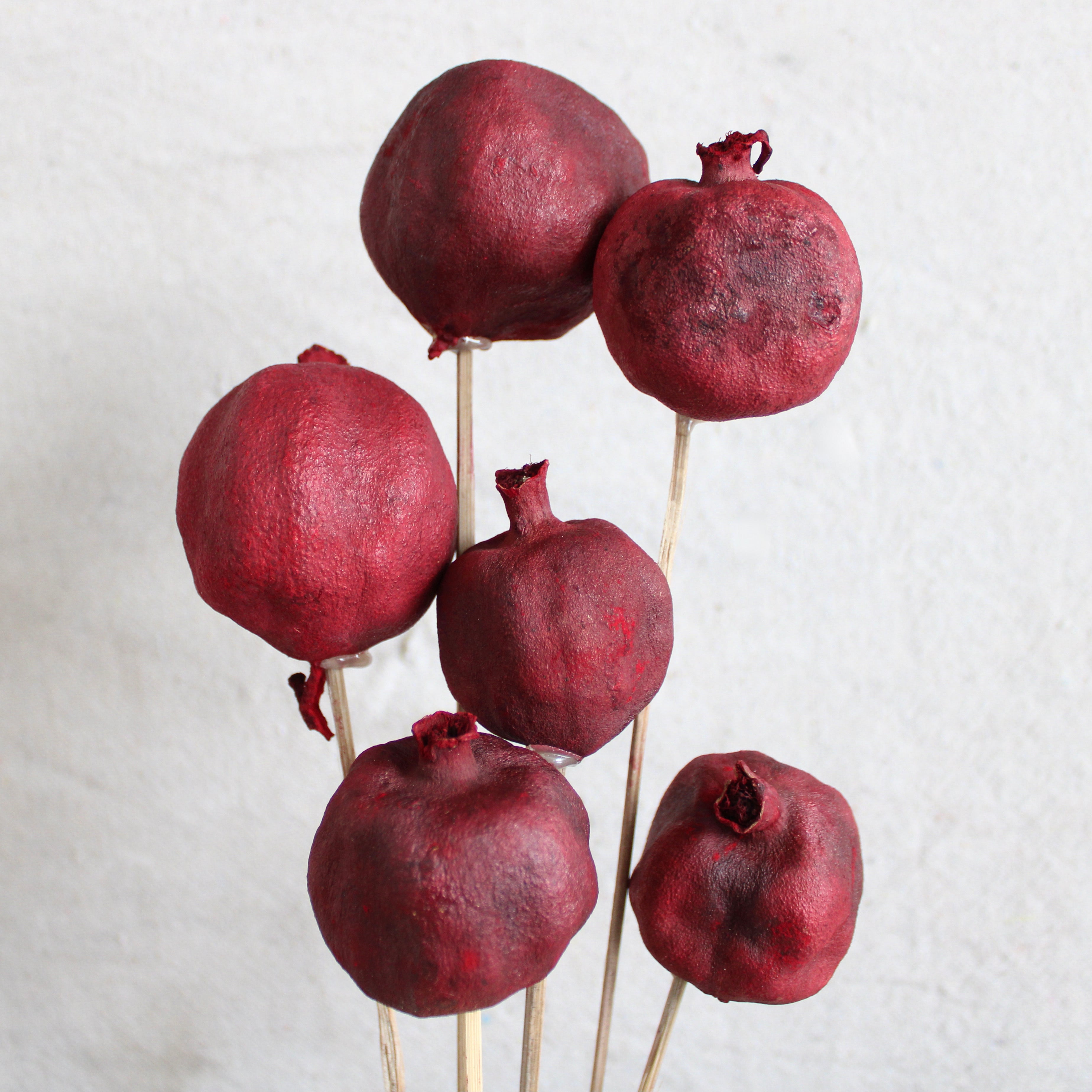 Arrange dried pomegranates into bouquets, arrangements, wreaths and more with ease using their long attached reed stems.