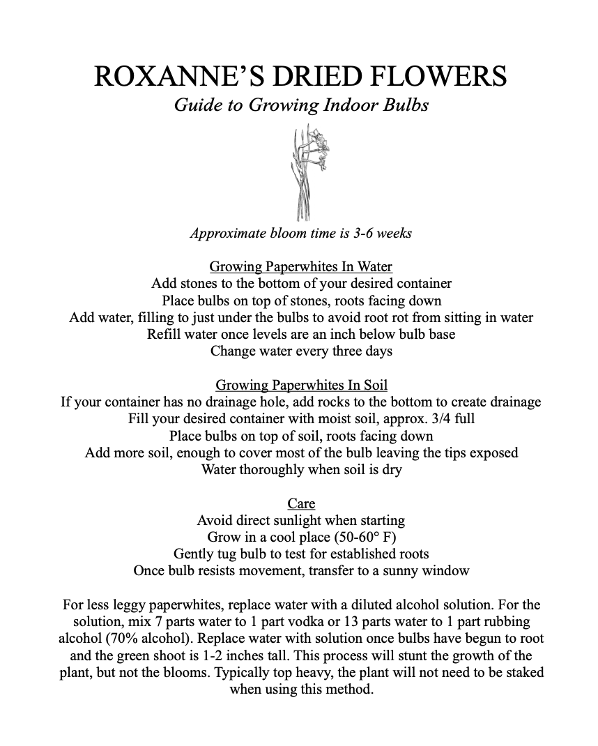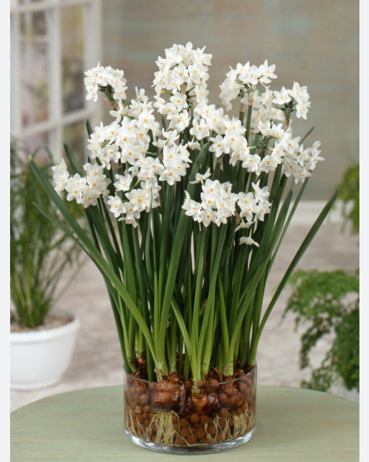 Clusters of cupped, pure white flowers add charm to the indoors during the winter months. Paperwhite Narcissus Ziva is excellent for indoor forcing and planting in bowls with pebbles or in potting soil. These narcissus bulbs are available from October until December for blooming from November on. Growing 16-20" tall, Ziva can also be used as cut flowers or planted outdoors in warmer climates. The bulbs do not need to be pre-cooled. They can be planted directly in the greenhouse, house or garden.